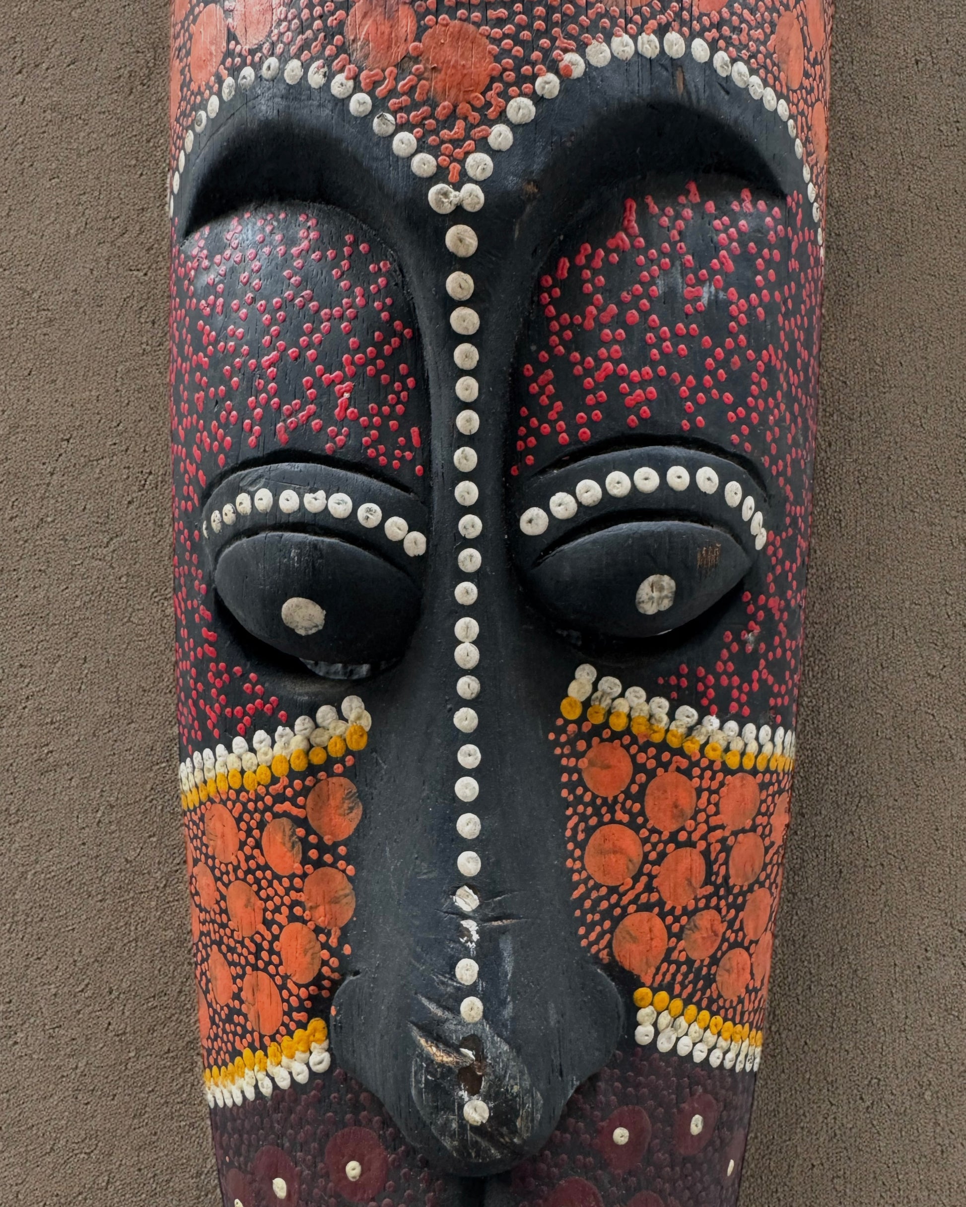 Handcrafted from wood, intricately carved and beautifully hand-painted in a traditional style. Rich in detail and artistry, it makes a striking piece of cultural decor.