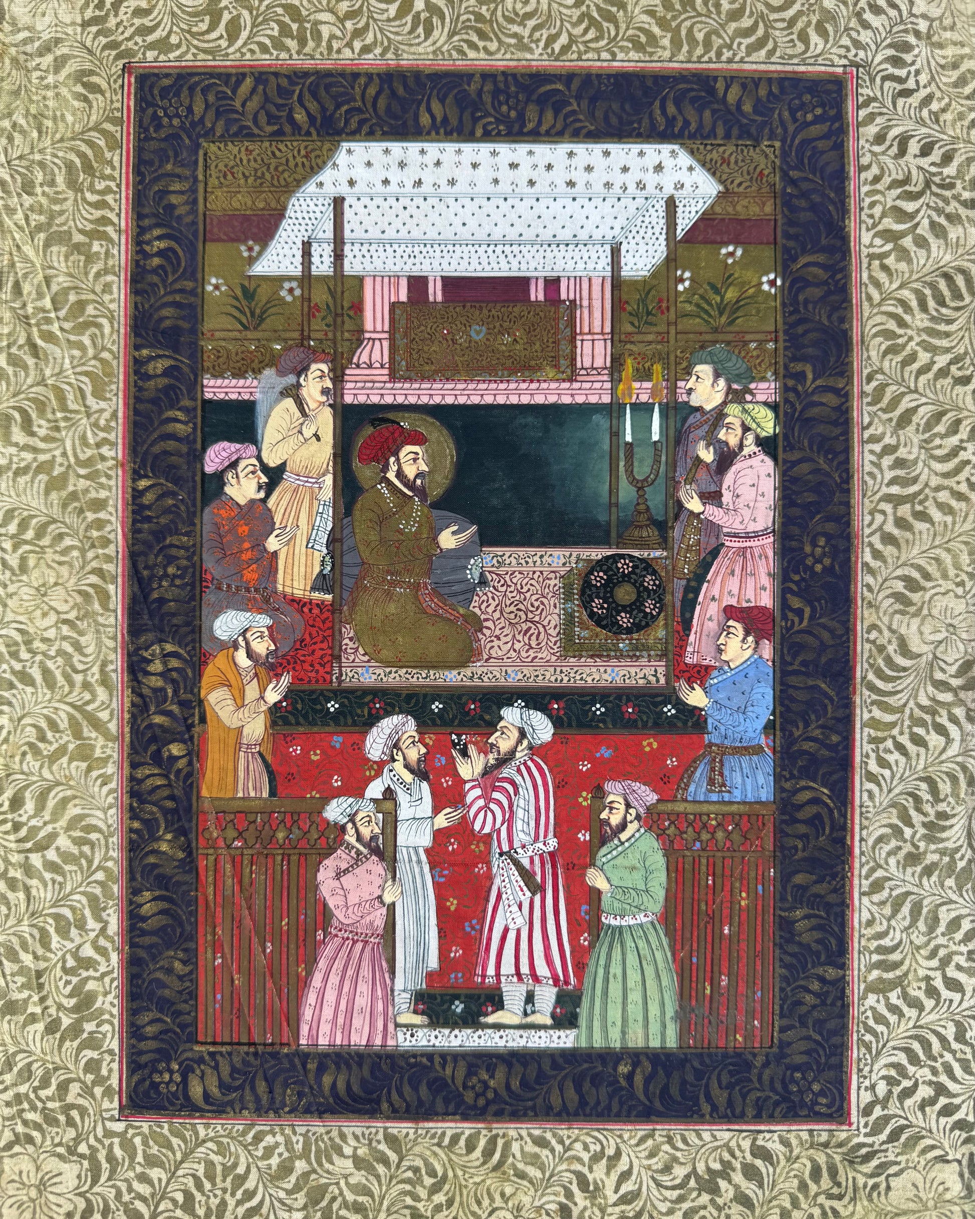 Beautiful, rare, and intricately detailed court and royal scenes. A fine example of traditional Indian miniature art.
