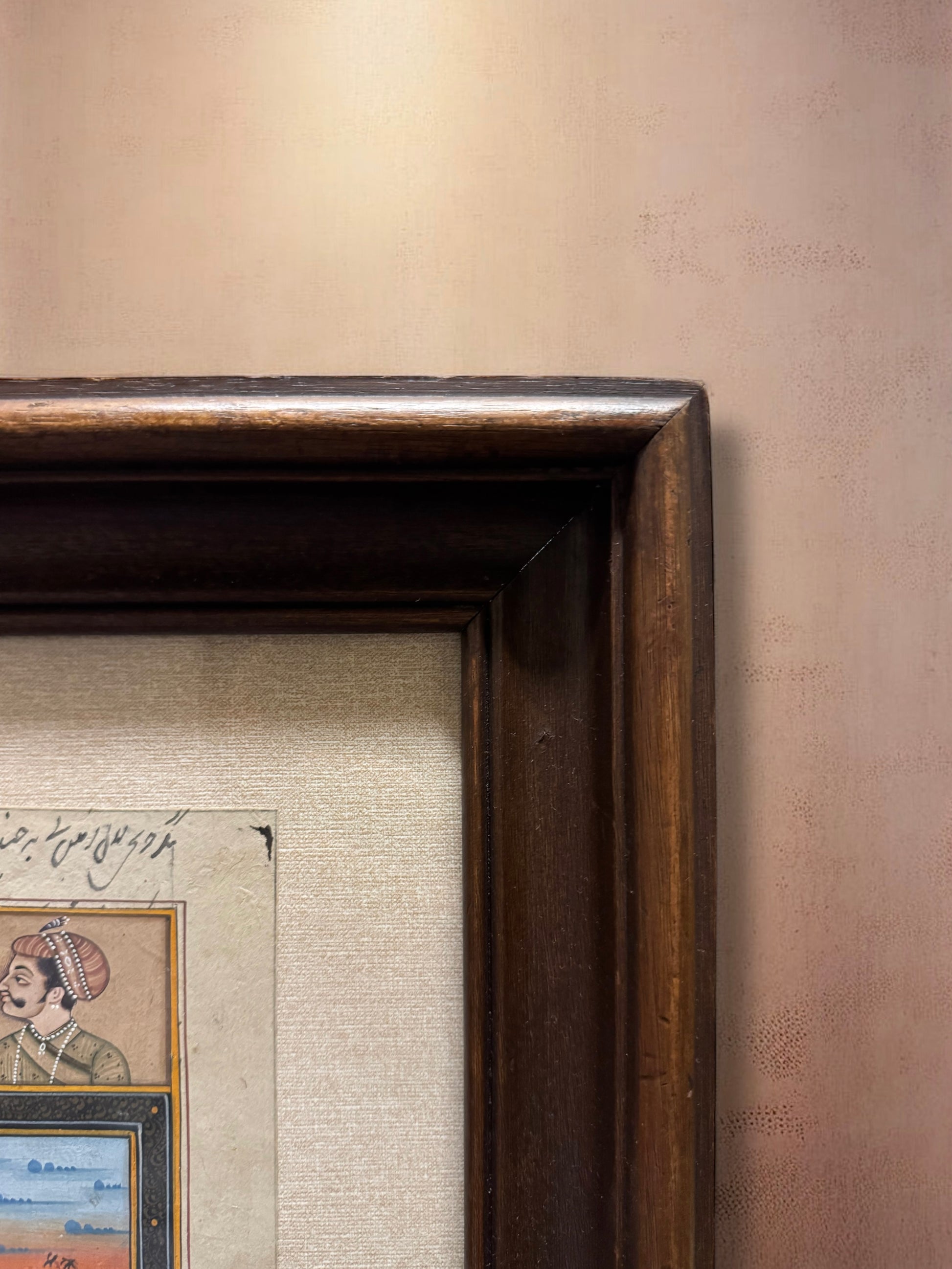 An exceptionally fine and detailed hand painted miniature in the Mughal tradition. The figures and faces are rendered with great precision and delicacy, a quality seldom found today amidst recent mass reproductions.