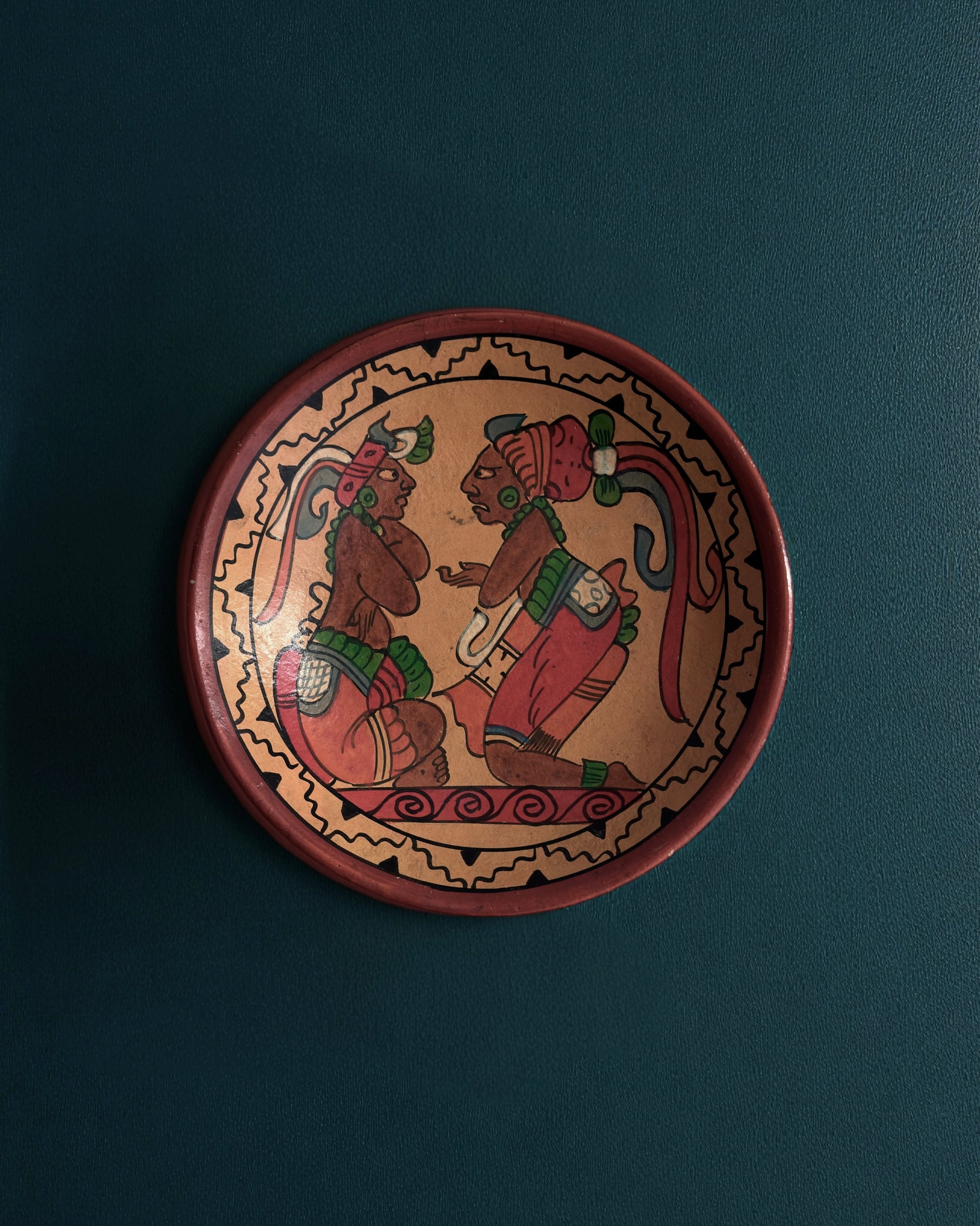 Mexican Mayan Aztec Folk Art Pottery Plate