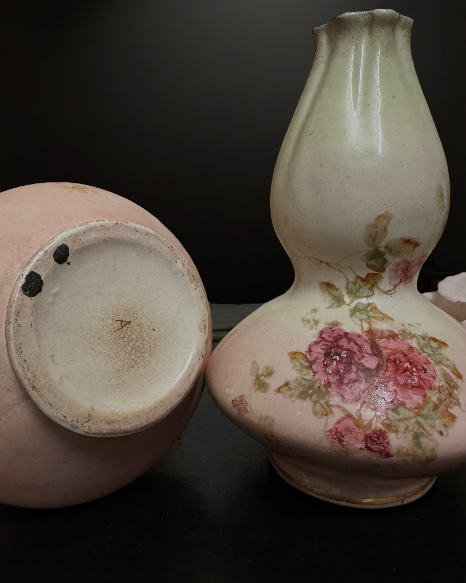 Pair of Hand-Painted Double Gourd Victorian English Vases (c. 1890-1900)