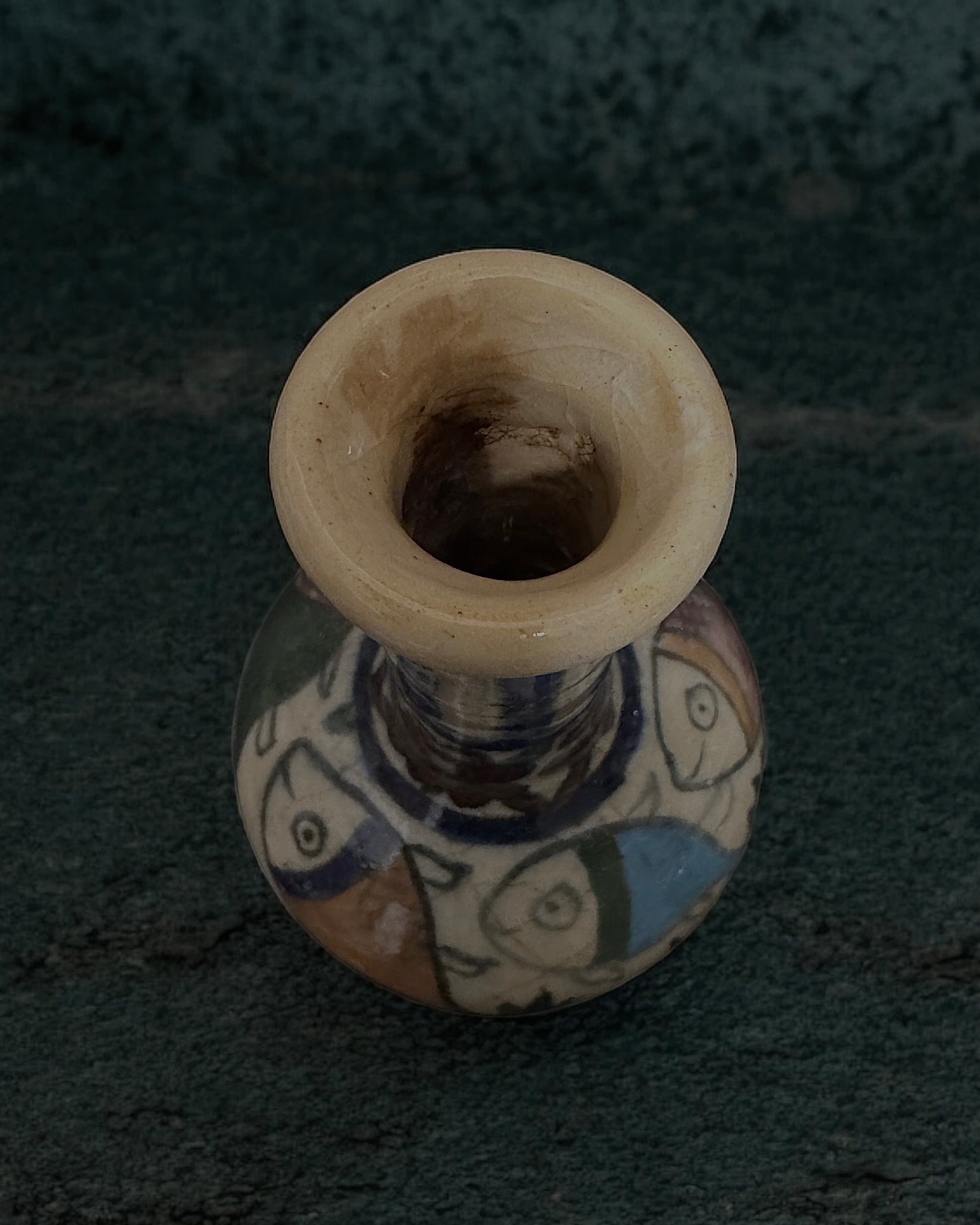 A striking pair of vases from the late 19th century, originating from the Persian Qajar period (1789–1925). These beautifully preserved pieces are meticulously hand-painted and hand-glazed, showcasing the rich artistic traditions of the Qajar era. The vases feature intricate floral and fish motifs rendered in the iconic Persian color palette - cobalt blues, vibrant turquoises, soft purples ,other earthy and vibrant colours.