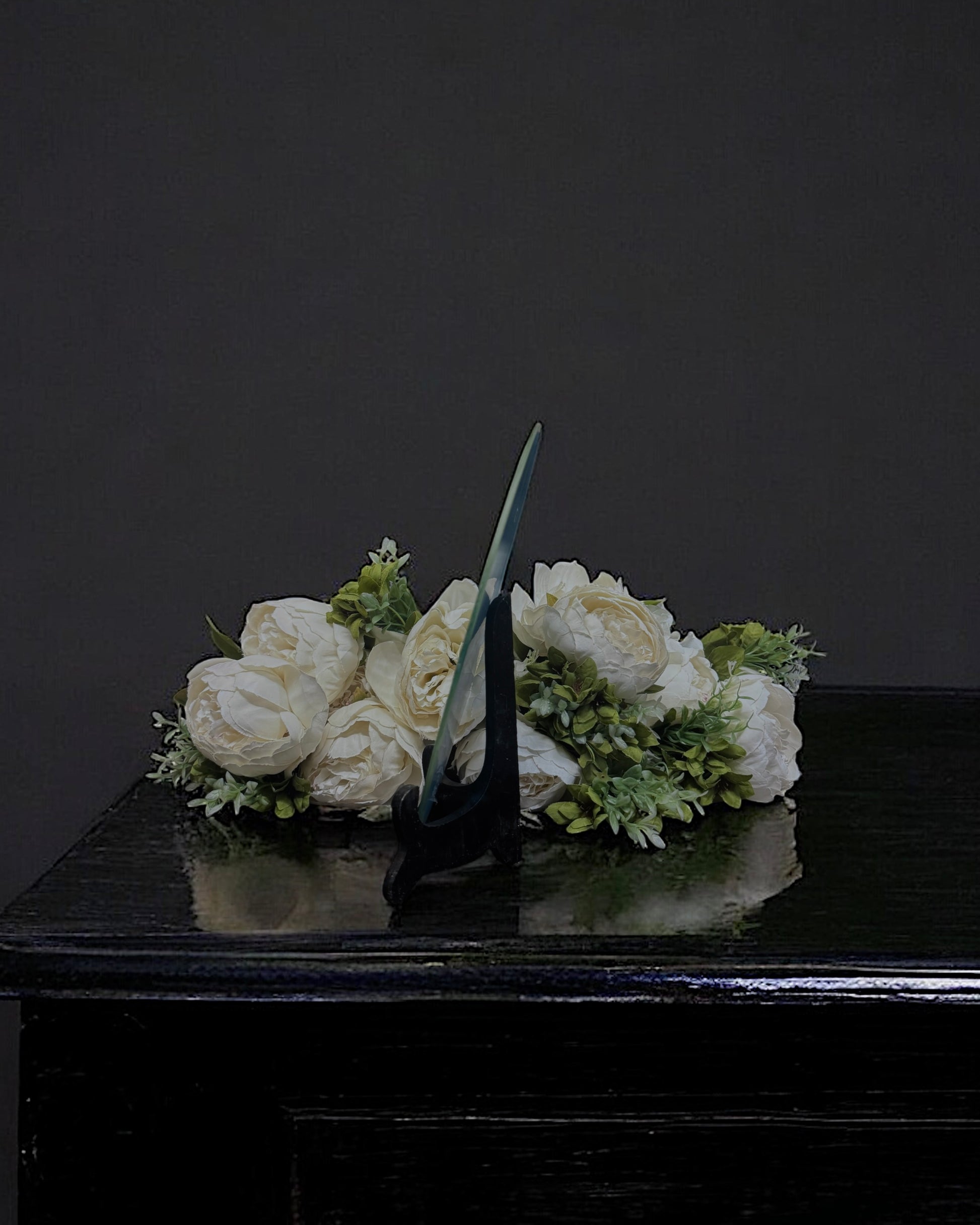 Displayed on a wooden stand, this delicate and finely detailed painting is both a captivating work of art and a cherished keepsake.