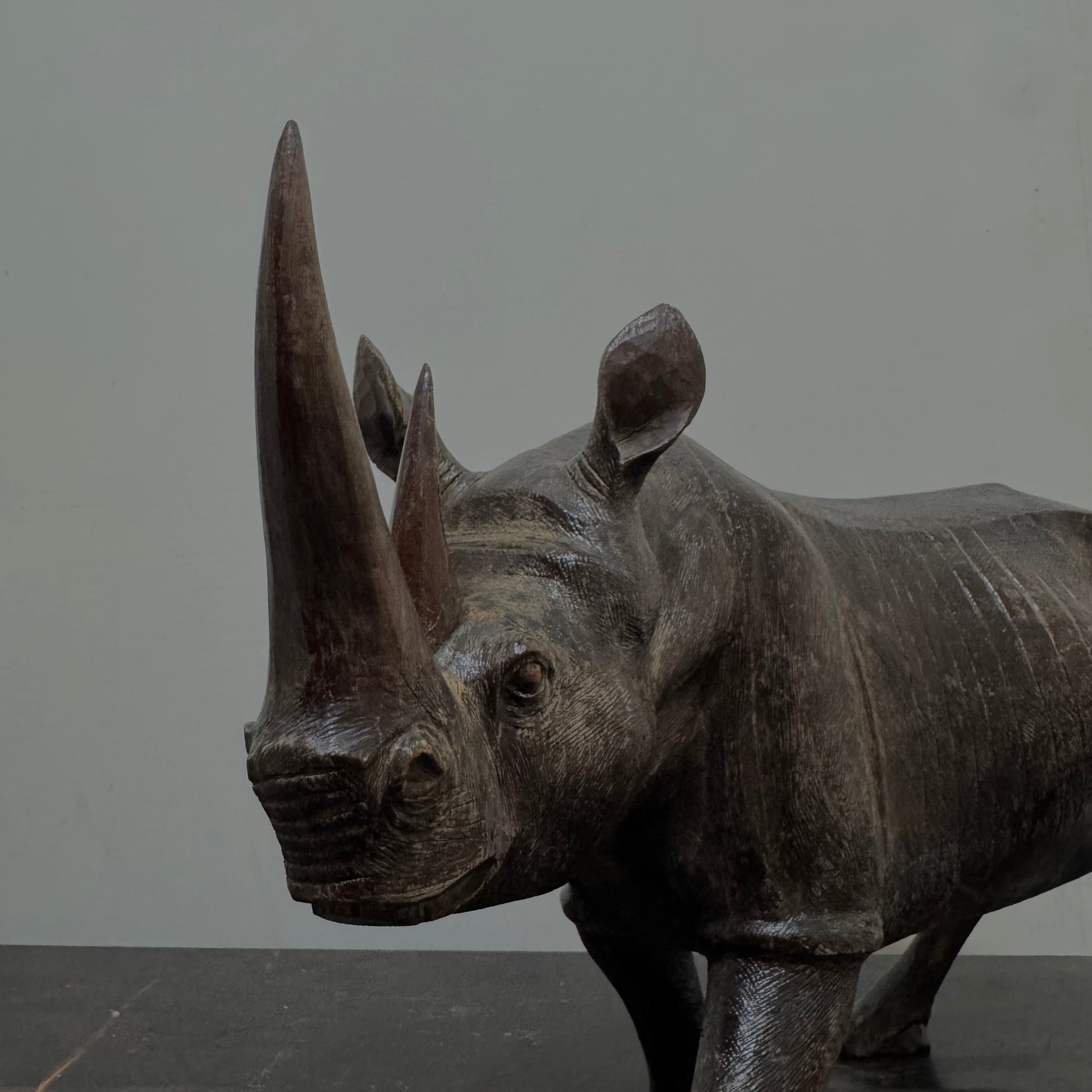 A strikingly large, hand carved sculpture made from solid rosewood. The wood is exceptionally dense and heavy, giving the piece a real sense of substance, while the fine carving captures the powerful form of the animal in impressive detail. Rare to find in this size and quality, it has a bold presence that makes it stand out in any setting.