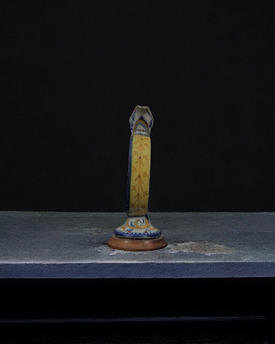 Dating is confirmed by stylistic and technical features characteristic of Triana workshops in the 19th century, including tin glazed surfaces and revivalist hand painted motifs, natural patina and the Triana mark.
