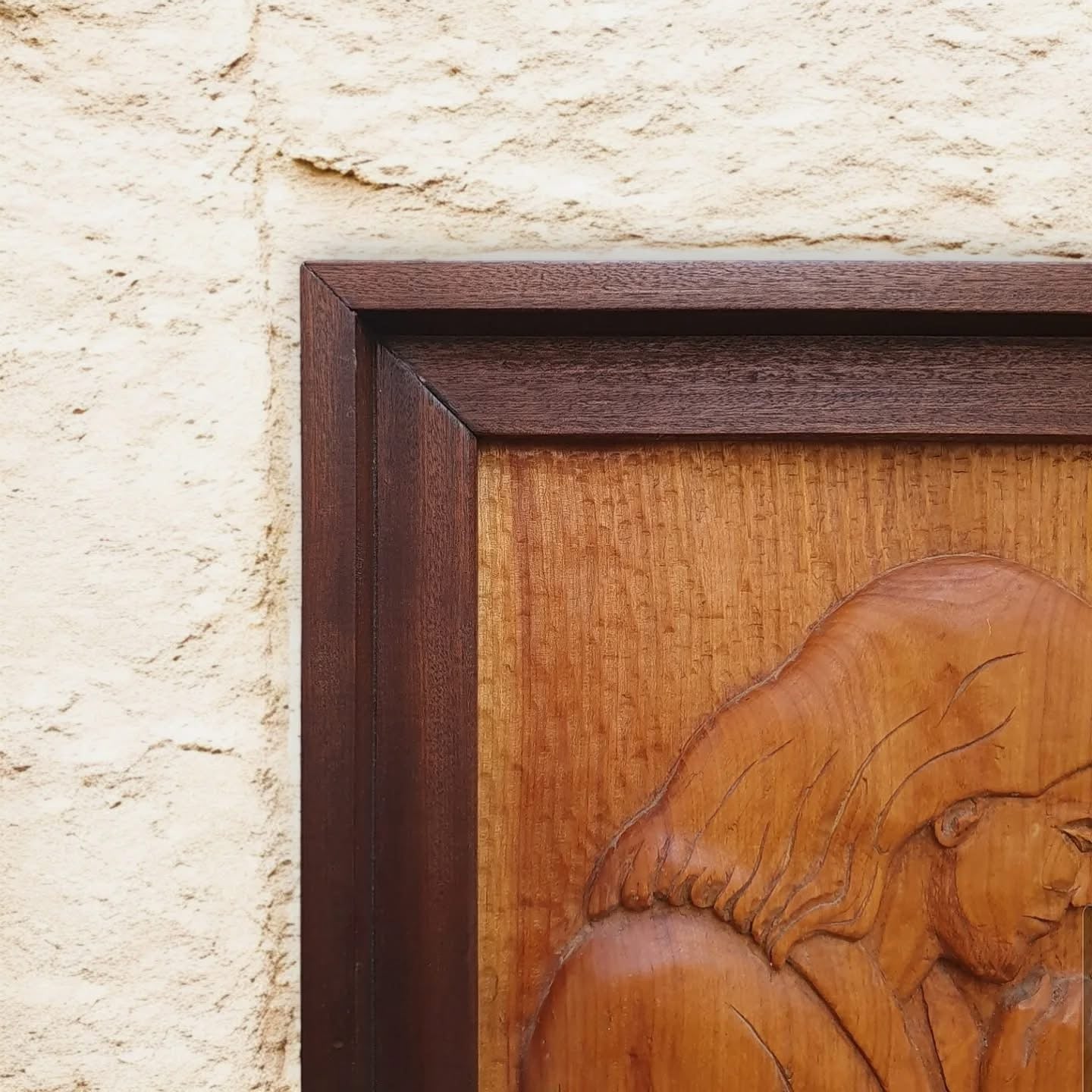 Solid Hardwood Hand-Carving by John Greengrass 2004 - Witness the pinnacle of woodcarving expertise in this magnificent one-piece solid hardwood carving, carefully crafted by the esteemed artist John Greenglass. With a keen eye for detail and a deep passion for his craft, Greengrass has coaxed the wood into a work of art that is at once intricate, nuanced, and sublime. Every curve, every line, and every texture bespeaks the artist's unwavering commitment to excellence, making this piece a true masterpiece of contemporary woodcarving.