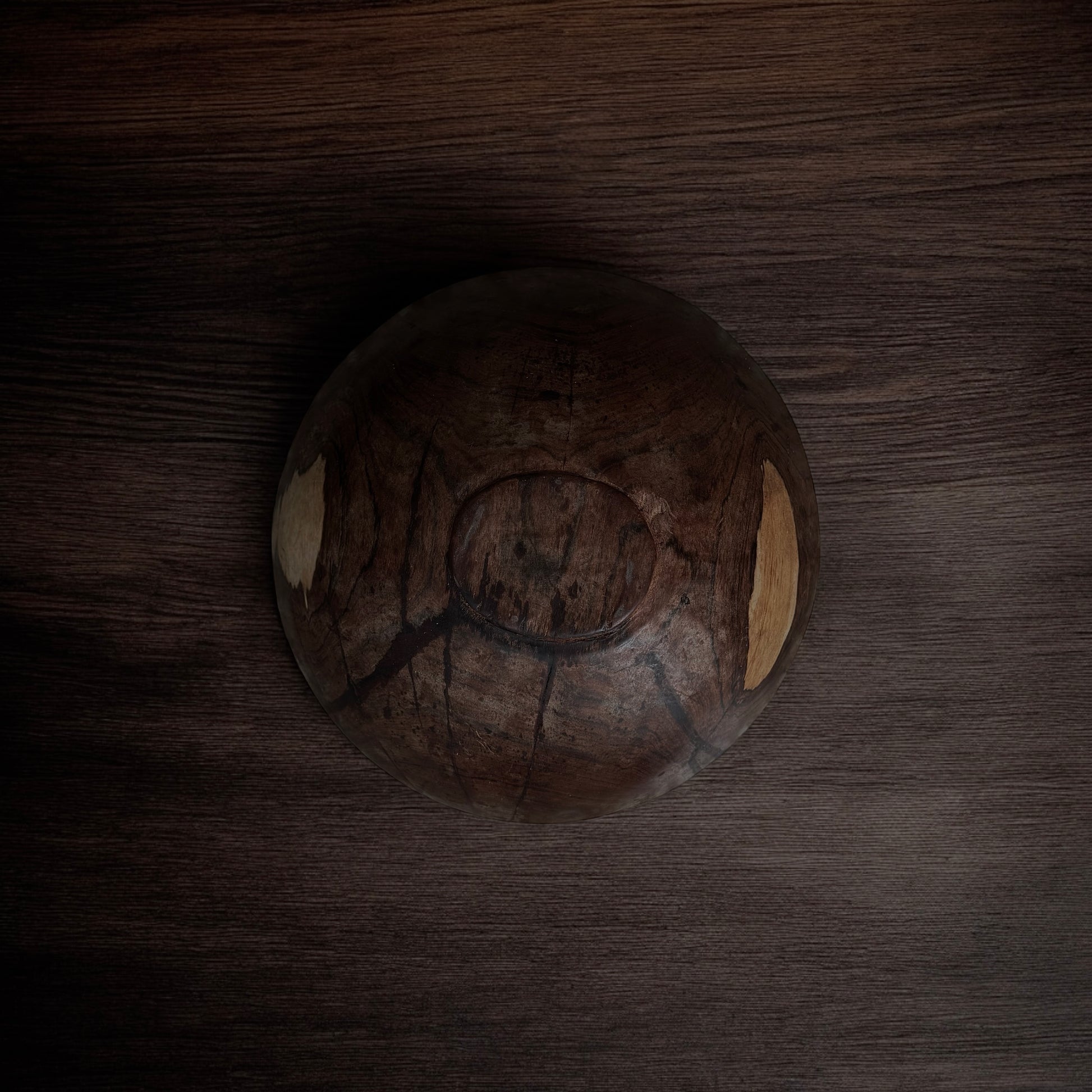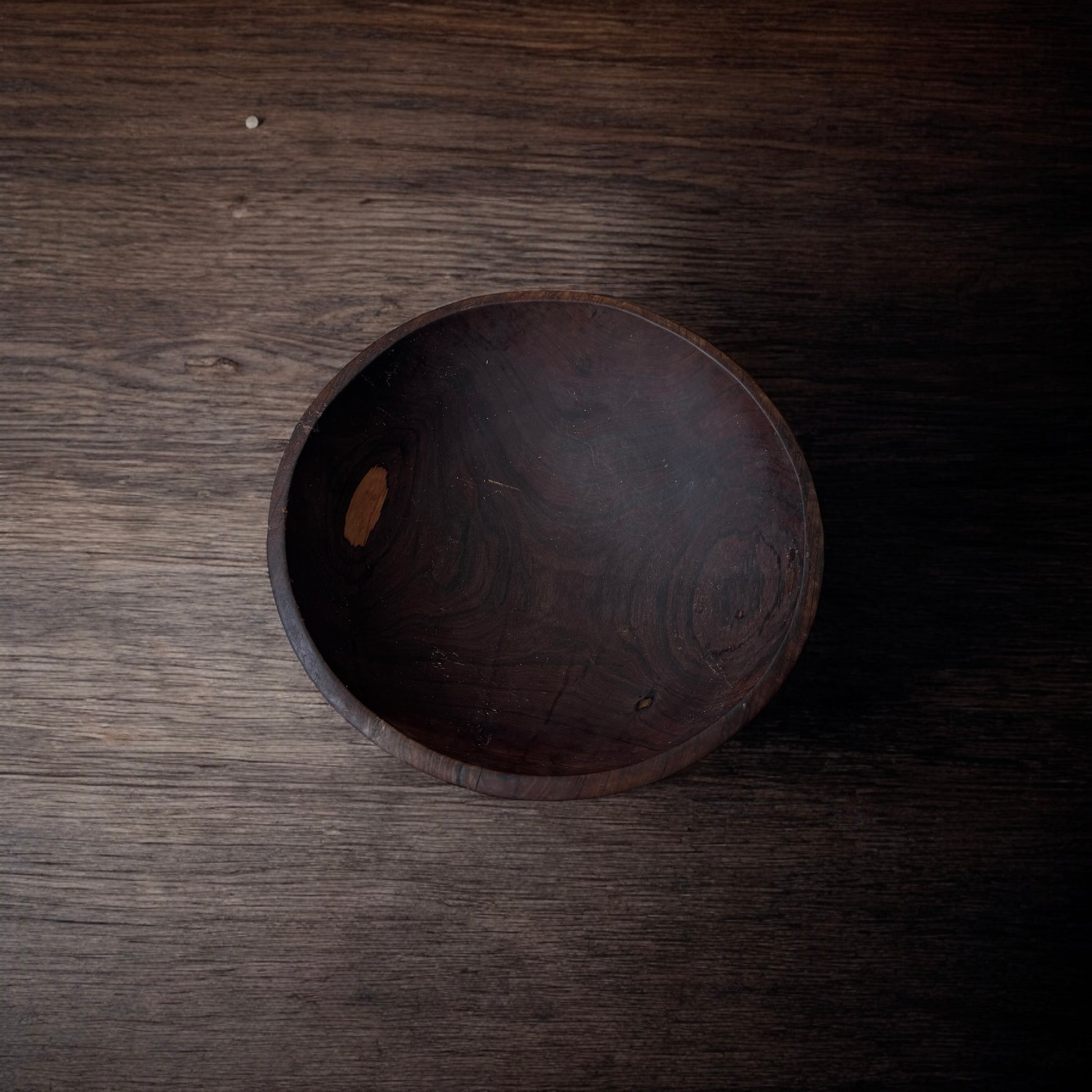 Made from a single block of wood, this bowl has an imperfect shape and a rich patina that comes with age and use. There are small marks and irregularities that add to its charm rather than take away from it. A simple, decorative piece that fits in nicely whether your space is modern, rustic, or traditional.